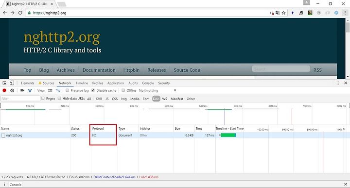 그리고 크롬 개발자 도구를 통해서도 현재 사용중인 프로토콜을 확인 할 수 있다.